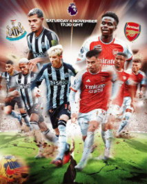 I den 11. runden av Premier League-sesongen 2023-2024 begynner fokuskampen på St. James Park Stadium Arsenal utfordrer Newcastle på bortebane. Fans som har på seg hjemme Fotballdrakter utenfor banen heier på laget!
