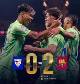 I de første 15 minuttene av kampen defuserer Unai Simon flere Barcelona-angrep. I det 17. minutt slo Balde en smart pasning og Gavi dyttet ballen i mål, Barcelona 1-0! Etter å ha pådratt seg en alvorlig kneskade, scoret Gavi, iført en Fotballdrakter, til slutt sitt første mål etter at han kom tilbake. I det 23. minutt ble Rafinhas skudd reddet av Simon, og Yamars oppfølgingsskudd var ikke sterkt nok, og ballen ble reddet av Simon Barcelona. I det 52. minutt slo Gavi et kryss og Yamal dyttet ballen i mål, og Barcelona sikret seieren 2-0! Ifølge statistikken har Yamal vært direkte involvert i 18 mål på kun 21 kamper denne sesongen, og overgangsverdien hans på det tyske overgangsmarkedet har steget til 180 millioner euro. Barcelona var den første som gikk videre til den spanske supercupfinalen. Den gode nyheten er at Olmo og Pau Victor begge er midlertidig registrert og de kan få en sjanse til å spille i finalen.