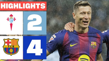I det 9. minutt gjorde Marcos Alonso en defensiv feil med armen, og dommeren dømte straffe etter å ha sett på videoen. Lewandowski scoret straffen og ga Barcelona en 1-0-ledelse. I det 11. minutt utlignet Sergio Carreira for Celta Vigo. I det 37. minutt leverte Marcus Rashford en strålende pasning, og Lewandowski kastet seg over den løse ballen og scoret, noe som ga Barcelona ledelsen 2-1. I det 43. minutt utlignet Borja Iglesias igjen for Celta Vigo. I det 45+4 minutt scoret Yamal, ikledd FC Barcelona drakt, og Barcelona ledet dermed 3-1. I det 73. minutt tok Rashford et hjørnespark, og Lewandowski headet ballen i mål og fullførte dermed sitt hat trick! Barcelona sikret seg en 4-2-seier.